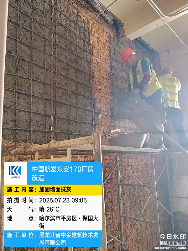 哈尔滨东安发动机厂170号工房工作区安全隐患改造工程是一项针对既有工业建筑的结构加固与功能优化工程。本次改造主要施工内容包括混凝土加大截面、植筋加固、承重墙托换及墙体开洞等关键技术环节,旨在全面提升工房的结构安全性、荷载承载力及空间适用性,确保其满足现代生产需求及国家现行规范标准。